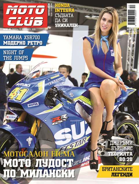 Безспорно, най-голямото събитие в края на годината е мотоциклетното изложение EICMA в Милано. Много нови модели, много премиери и други интересни събития се случиха във Fiera Milano. Всичко това намира основно място на страниците на новия брой на Moto Club. Отделно пък показваме два нови модела – Honda Integra, която направи премиреа във Fiera и Yamaha XSR700.