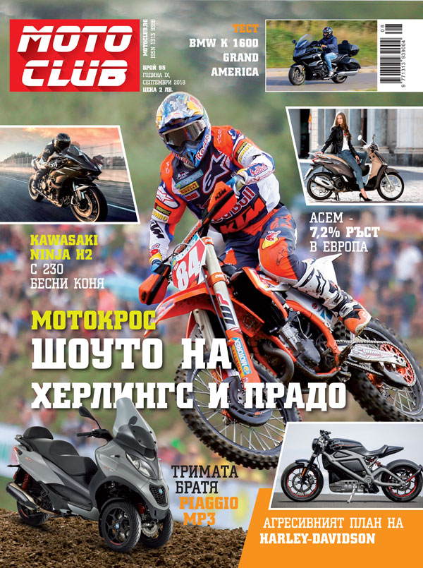 След като расте търсенето на мотоциклети, от Harley-Davidson обявиха своя план за бъдещо развитие и световна инвазия с нови модели. Други марки пък технологично обновяват гамата си. Най-големият италиански производител – Piaggio Group показа не една, а три нови триколки от модела МР3. От Kawasaki вдигнаха мощността на Ninja H2 на 230 к.с. и мотоциклетът стана още по-бърз. Ние пък тествахме друг мощен гигант, но туристически – BMW K 1600 Grand America.